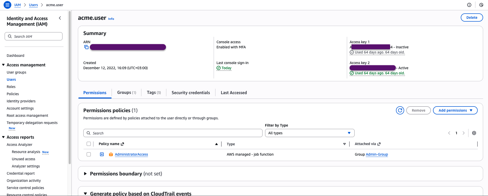 As a first step, a user must be created in AWS and the required permissions must be defined.