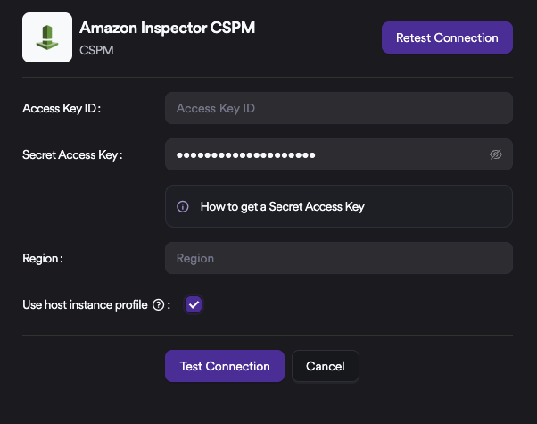 When Use Instance Host Profile is enabled, the integration authenticates using the IAM role attached to the EC2 instance where the Invicti ASPM host is running.