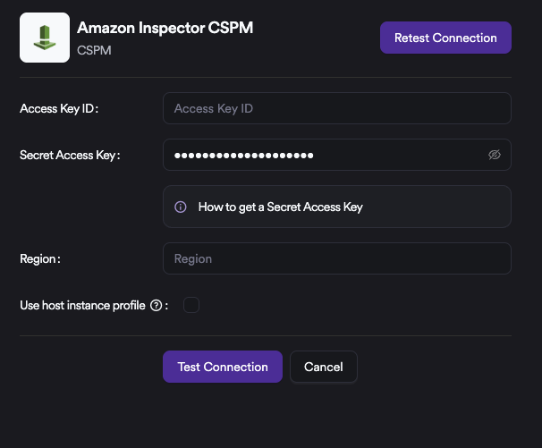 To integrate Amazon Inspector CSPM , the following steps should be followed. The integration supports two authentication methods: