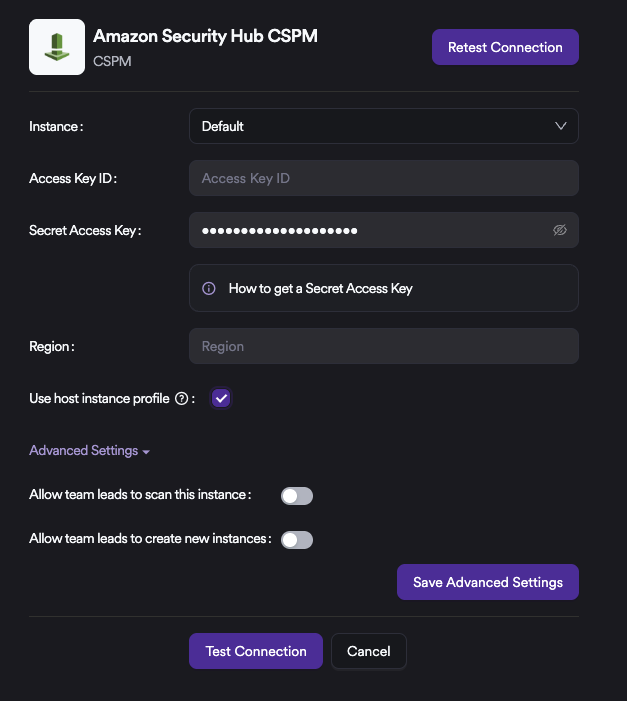 When Use Instance Host Profile is enabled, the integration authenticates using the IAM role attached to the EC2 instance where the Invicti ASPM host is running.