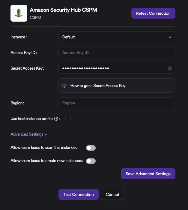 To integrate Amazon Security Hub CSPM , the following steps should be followed. The integration supports two authentication methods: