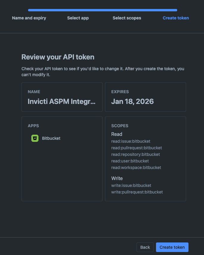 - After this step, the process can be continued from the Invicti ASPM UI using the generated token