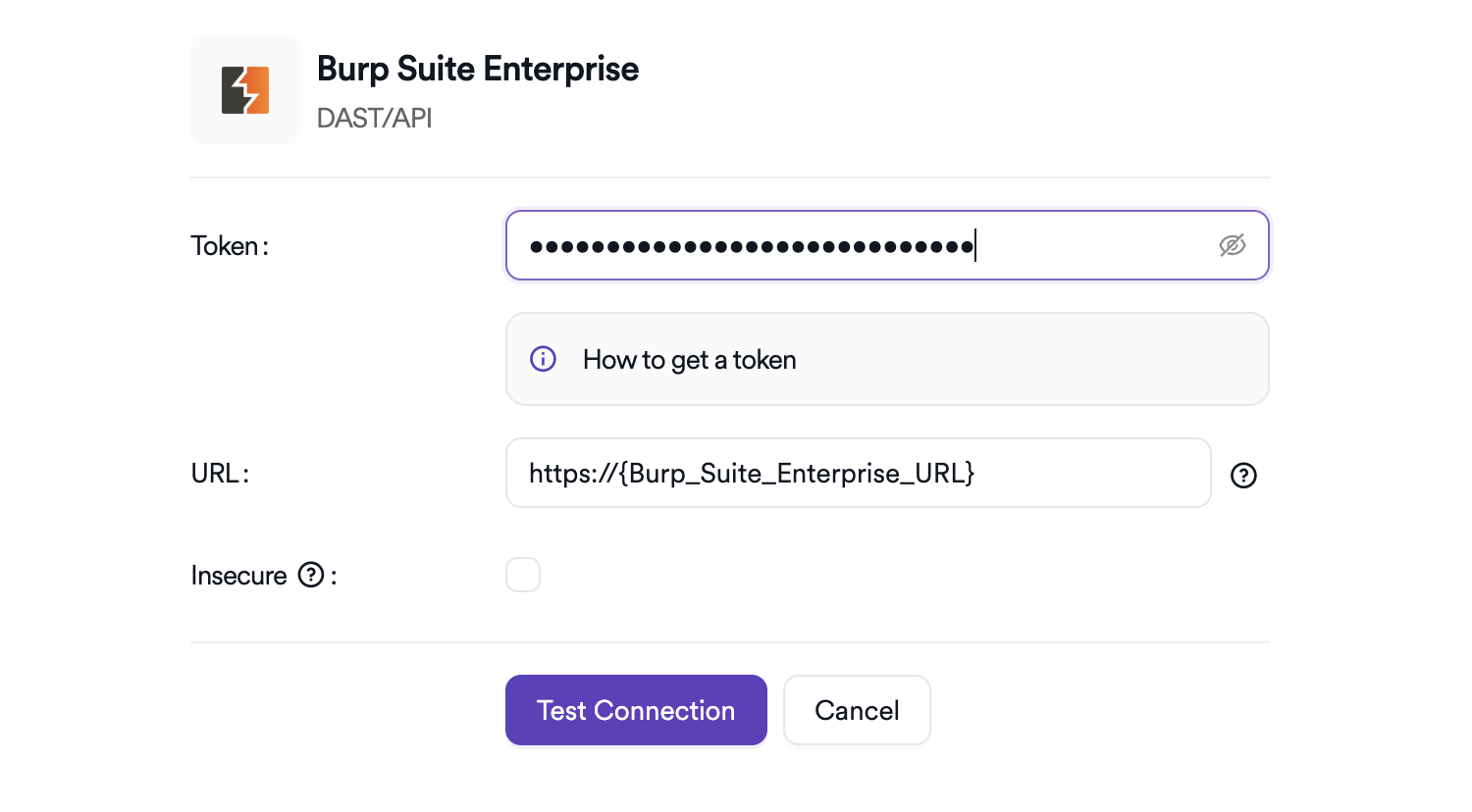 Afterwards, the integration can be completed using the URL and the generated token. Once the Test Connection step returns a successful result, scans can be configured under the relevant projects.