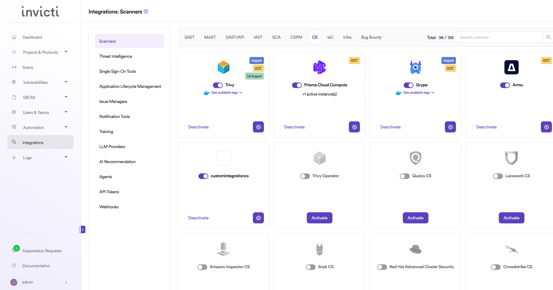 - CrowdStrike CS in Invicti ASPM imports vulnerability data from existing Falcon scans — it does not trigger new Falcon image scans.