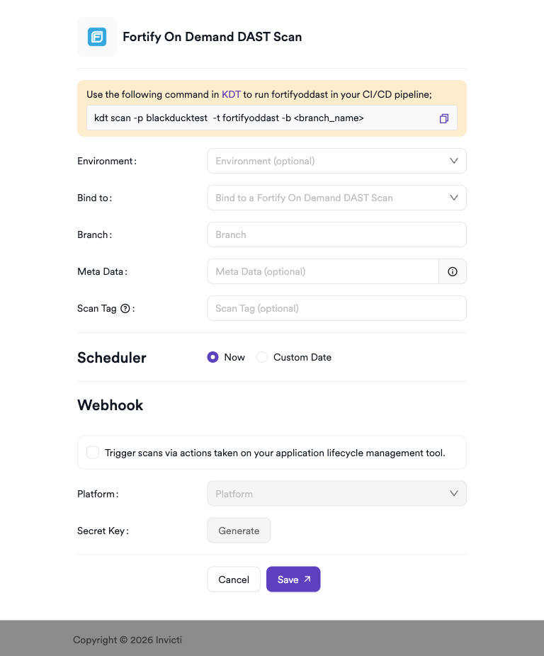 Fortify On Demand (FoD) is Micro Focus's cloud-based security testing platform that provides dynamic application security testing as a service. This integration allows Invicti ASPM to trigger Fortify On Demand DAST scans and import vulnerability findings.