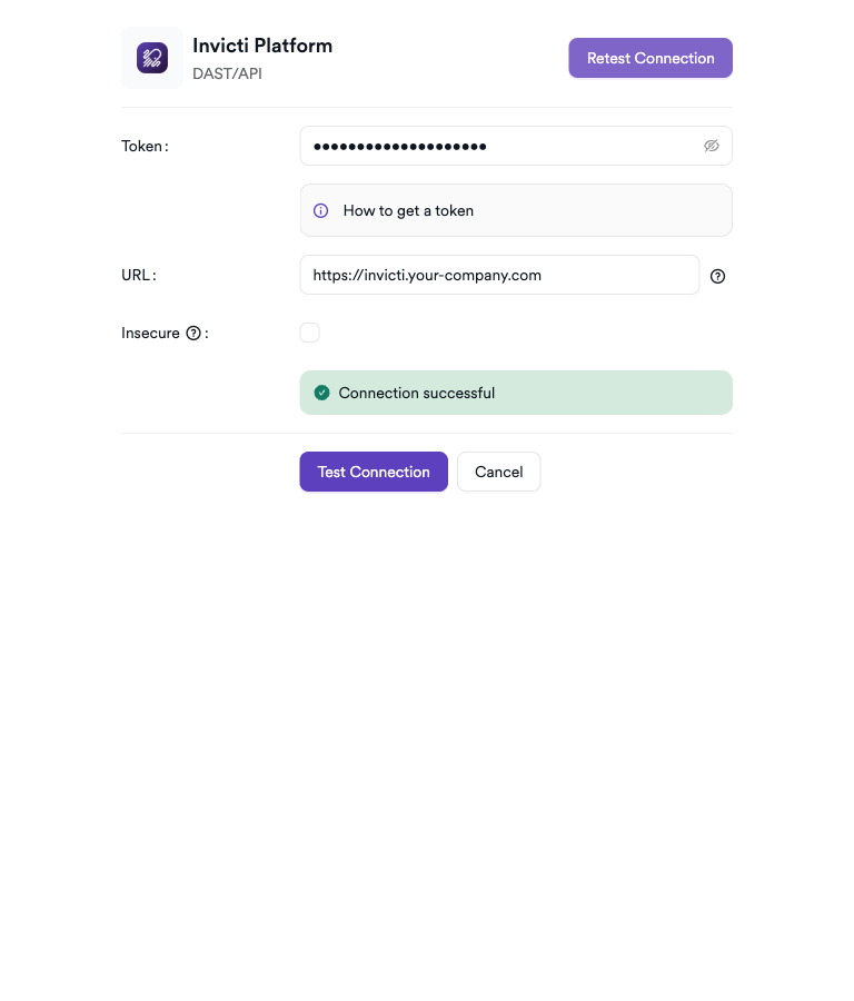| Invalid API token | Regenerate the token from Invicti Platform and update the settings |
