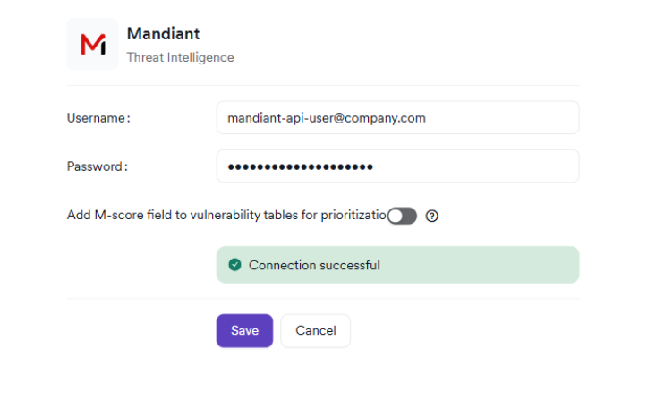 | M-Score column not visible in vulnerability list | M-Score was not enabled during activation | Edit the Mandiant integration and enable the M-Score toggle, then save. |
