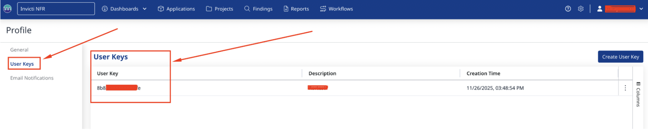 - Enter a meaningful description for the key (e.g., 'Invicti ASPM Integration' )