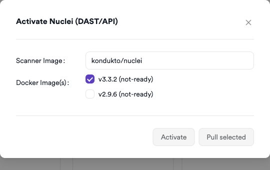 | Docker images not loading in modal | Ensure the ASPM server can reach Docker Hub to list available kondukto/nuclei tags |