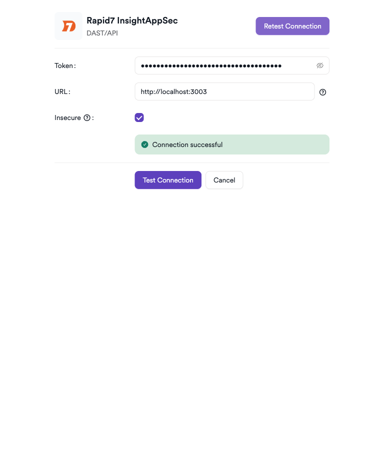 Token: Paste your Rapid7 InsightAppSec API token.