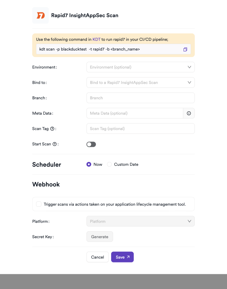 - Choose Rapid7 InsightAppSec from the scanner list.