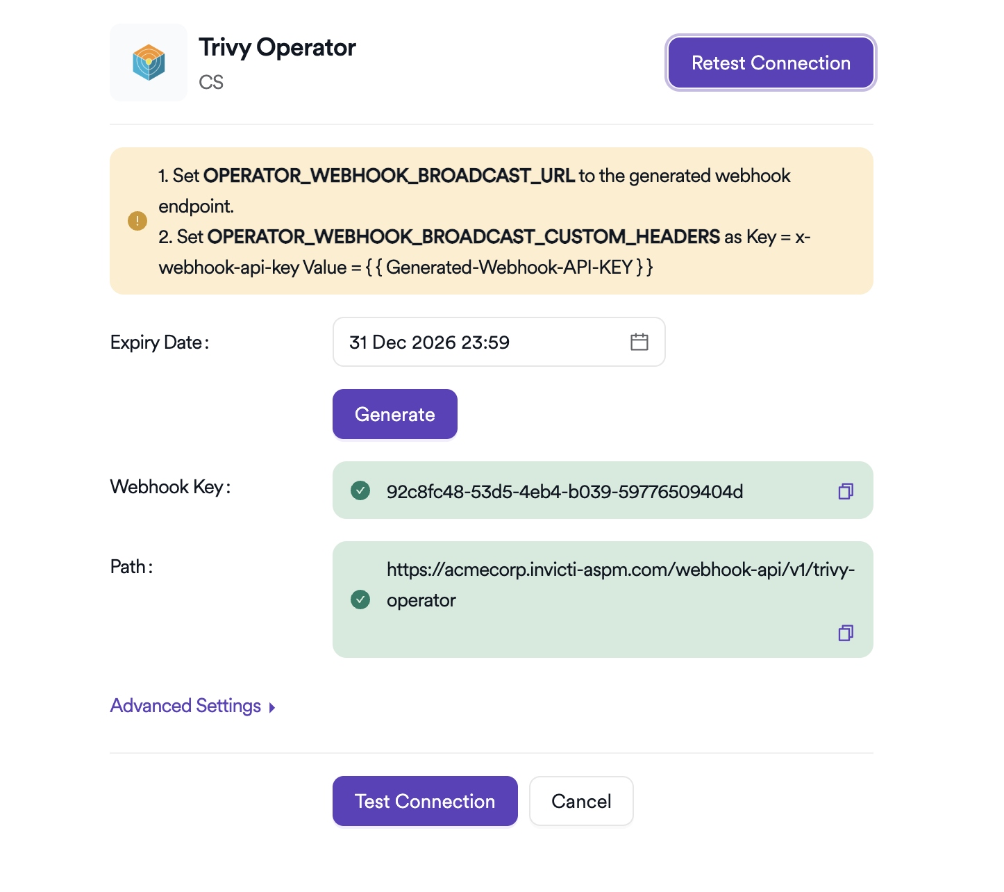 OPERATOR_WEBHOOK_BROADCAST_URL="https://{INVICTI_ASPM_URL}/webhook-api/v1/trivy-operator"